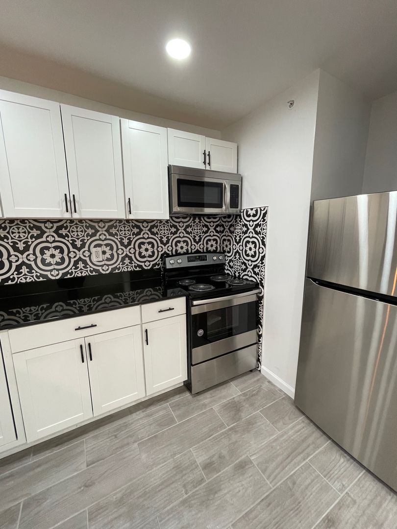This historic property has been tastefully renovated from the ground up! This updated 2-bedroom apartment features open space with lots of natural light, including a skylight and light shaft, LED lighting throughout, stone countertops and bar, stainless steel appliances including an over the stove microwave, central air conditioning, a video intercom, in apartment laundry machines, a large bathroom and walk in closet.